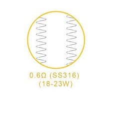 - 0,6 Ω coilen är det bästa alternativet för tjockare, tätare ånga och en luftigare vape, och är mer lämpad för en begränsad Direct Lung och lägre nikotin e-juicer.