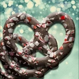 “Pretzelmint Bark är en högtidsfavorit som kombinerar spröd läcker njutning av kryddiga kringlor, smakrik choklad och en touch av kylig pepparmynta.”