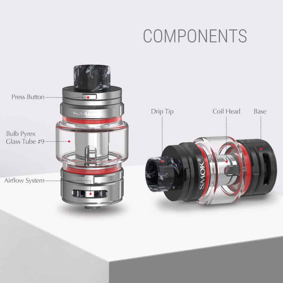 Perfekt utformad för dem som älskar stora moln, SMOK TFV16-tank är definitivt en superkraftfull och enorm subohm-tank med en gigantisk e-juicekapacitet på 9 ml och två helt nya TFV16 mesh-coils för att leverera massiv ångproduktion och superb smak. Dessutom har TFV16-tank ett förseglat toppfyllningssystem med ett revolutionerande topplock som kommer med ett säkert låsmekanism för att effektivt förhindra läckage. Plus den justerbara dubbla slitsade bottenluftflödet, SMOK TFV16-tank tar din vejpningsupplevelse till en ny nivå. Kort sagt, den är definitivt en kung av ångproduktion.