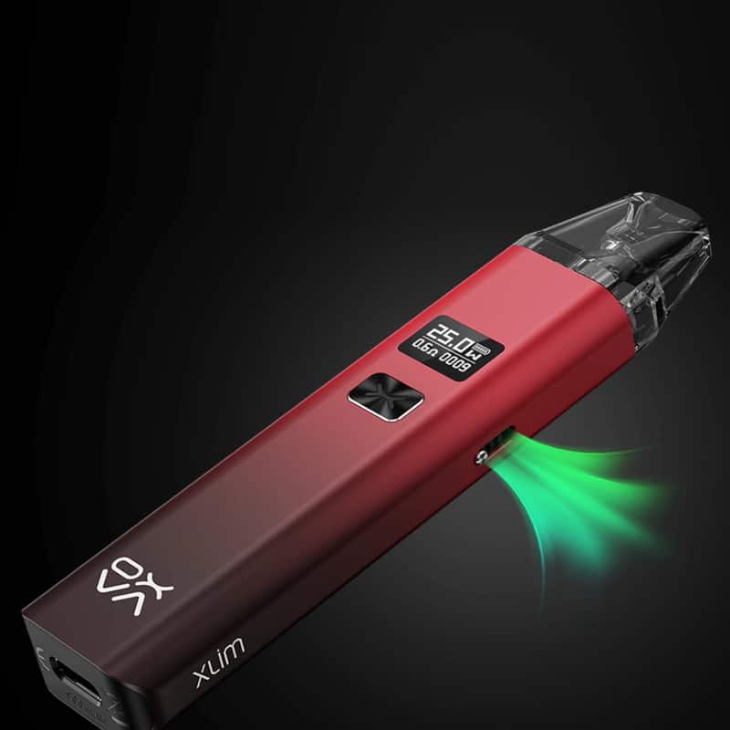 Oxva Xlim V2 Pod Kit använder smart watt-justering för att automatiskt detektera vilken pod som används och ställer in effekten för att passa motståndet utan något behov för att manuellt justera. Viktiga data som coilens motstånd, watt och batterinivå visas på en 0.46” mini OLED skärm. Xlim enheten använder en enda knapp för både avfyrning och inställningar samt för att stänga av/sätta igång enheten. Alternativet finns för antingen knapp-aktiverade manuella bloss eller auto-aktiverat genom att helt enkelt inhalera genom munstycket.En justerbar luftflödesinställning på sidan av Oxva Xlim betyder att användare kan fininställa luftintaget för ett lösare drag eller för en mer begränsad Mouth-to-Lung (MTL) vape. Poddens transparenta design betyder att man lätt kan se e-juice nivån så man kan förhindra att podden torkar ut och coilen från att brännas.